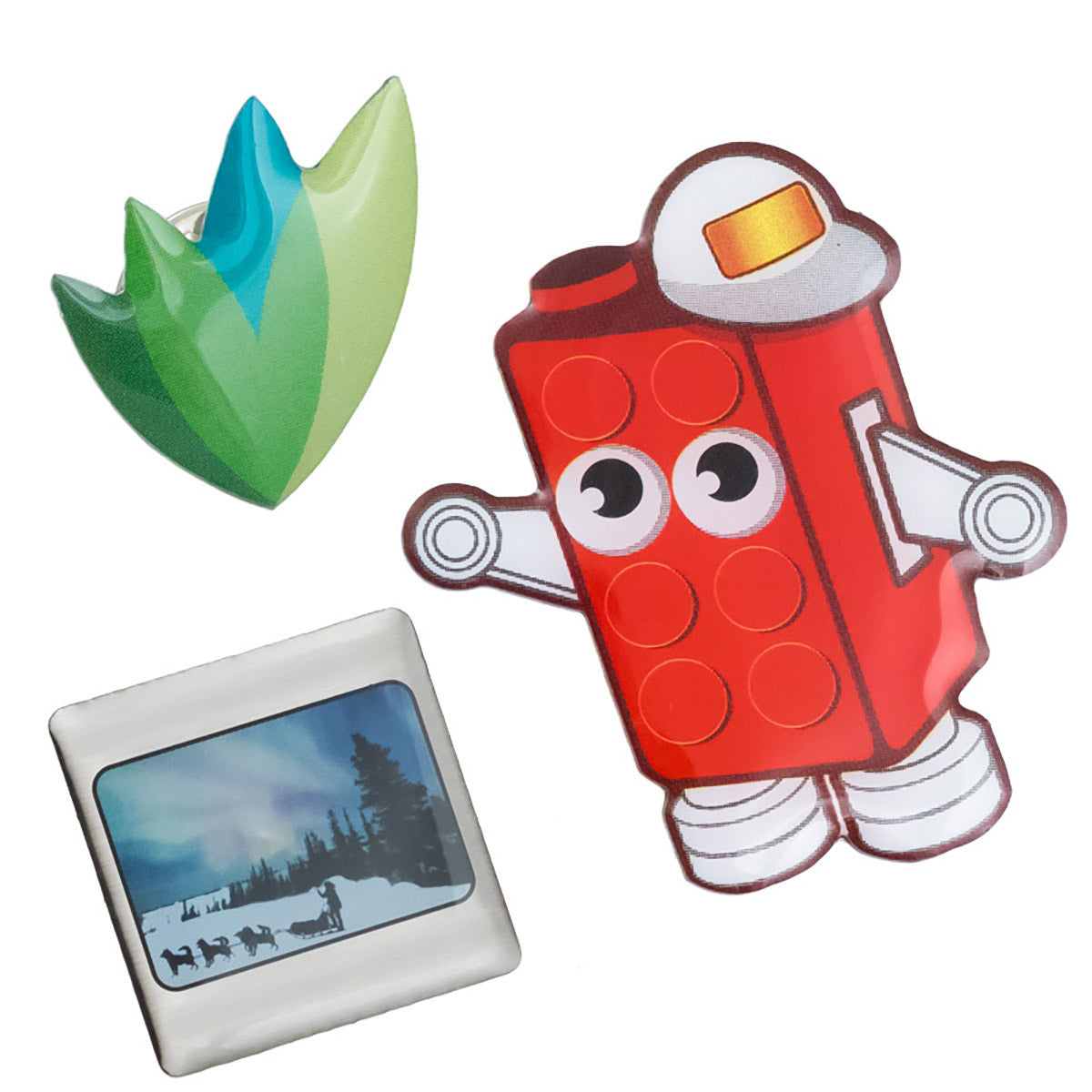 These pins can be produced with a thin stainless border or printed edge-to-edge for a seamless “full bleed” look. They are particularly useful when you need to reproduce complex logos, colorful artwork, or detailed graphics that other pin styles cannot accommodate.